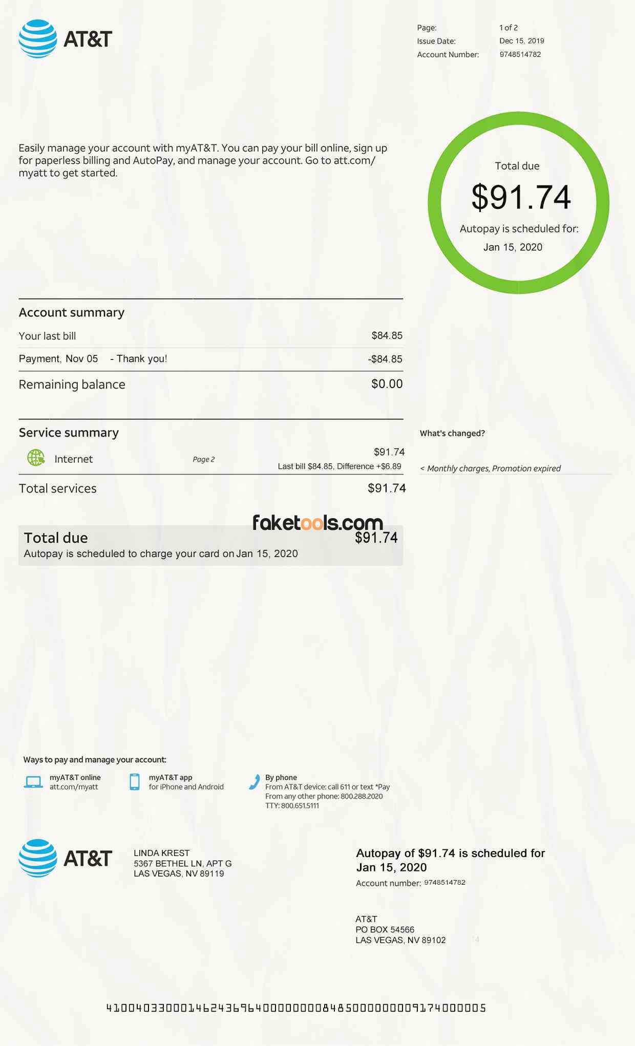 AT&T Utility Bill Template PSD Files Included: