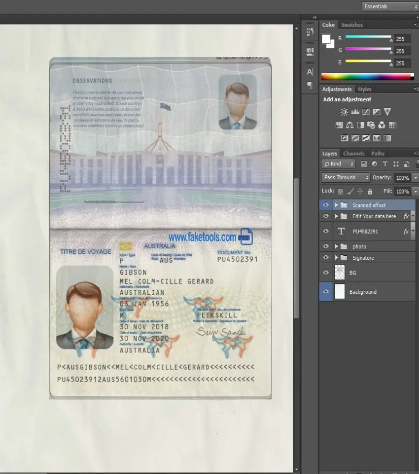 Sometimes, you need to upload a copy of your passport for verification on your online platform. The website may ask you to upload a photo of your passport to confirm your identity. It’s a very easy task, but the problem comes when you lose your real passport or the account is not in your name, perhaps. Our Psd template solves the problem. The Australia passport template PSD is a layer-based Photoshop file. Fully editable PSD template. Providing a high-quality PSD template for creating a realistic document. Each layer is individual and editable. This ensures the template allows for easy customization of personal information. You can click on each layer and change it, including the photo, name, passport number, issue date, expiration date, gender, birth date, background, and more. That’s what makes it useful.