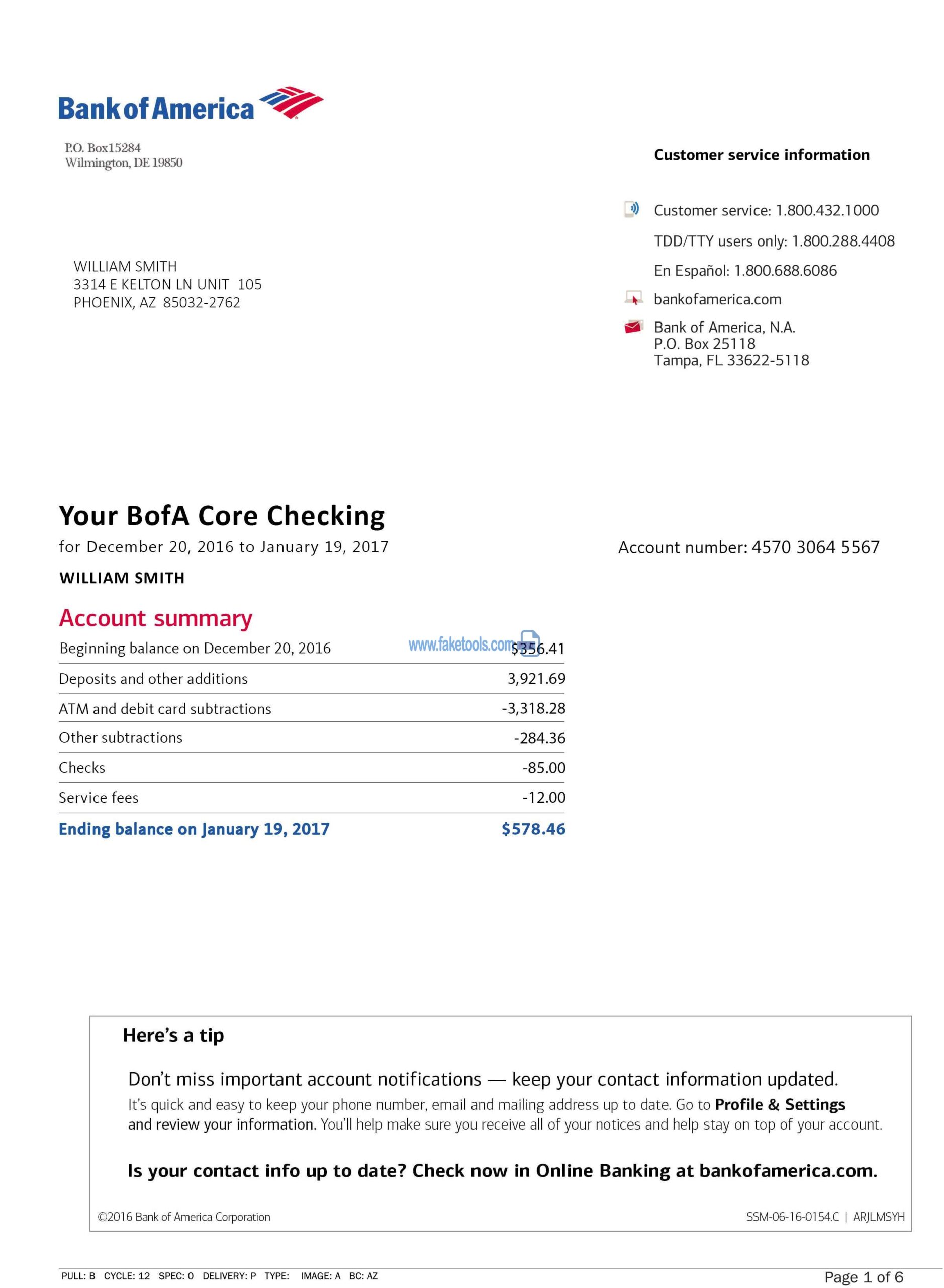 Bank of America Statement Template PSD Files Included: