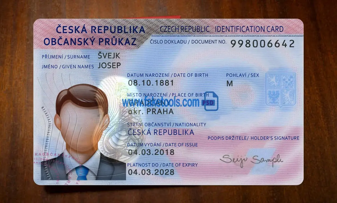 The Czech Republic ID card template PSD is a layer-based Photoshop file. Fully editable PSD template. Providing a high-quality PSD template for creating a realistic document. Each layer is individual and editable. This ensures the template allows for easy customization of personal information. You can click on each layer and change it, including the photo, name, ID number, issue date, expiration date, gender, birth date, background, and more. That’s what makes it useful.