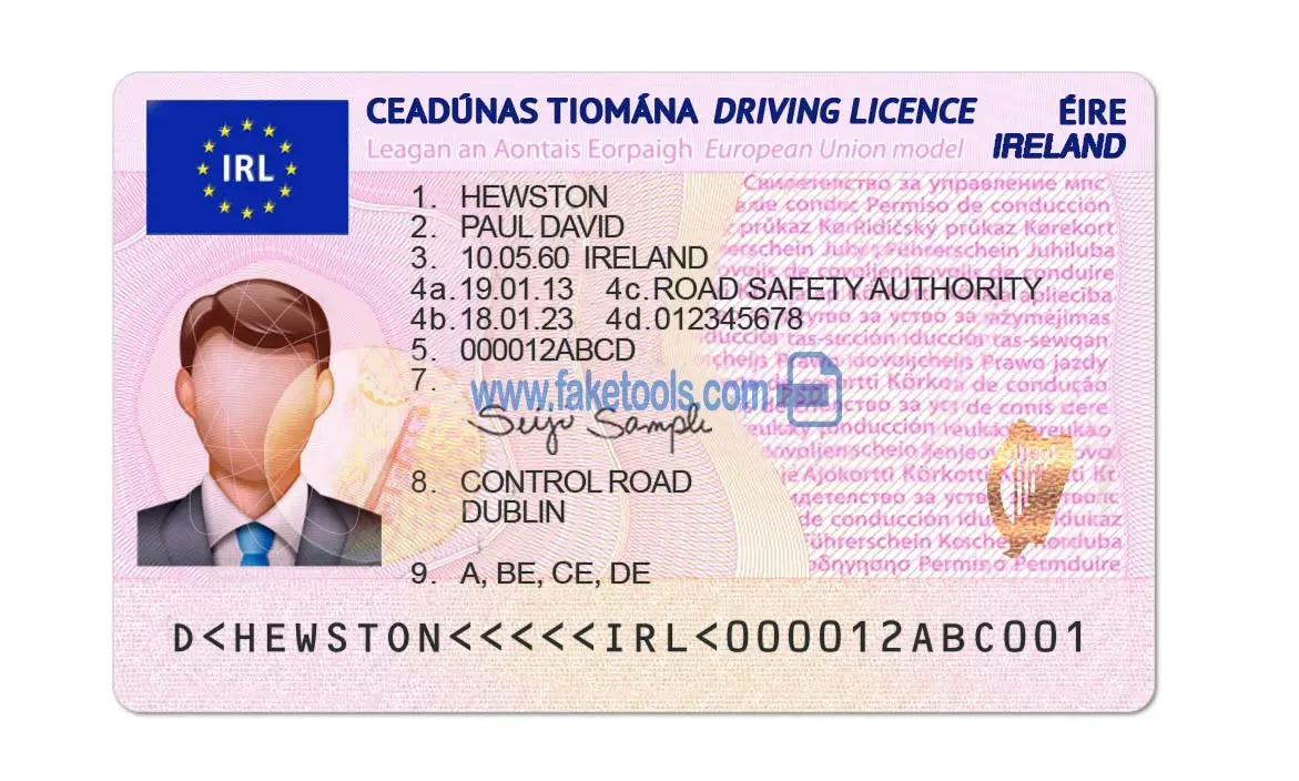 👉 Ireland Drivers License template PSD | High-Quality & Editable