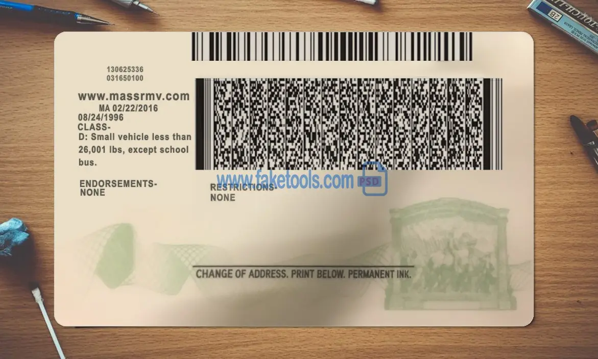 👉 Massachusetts Drivers License template PSD | High-Quality & Editable