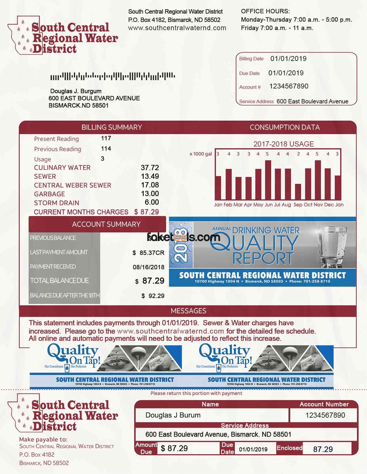 north dakota Utility Bill Template PSD Files Included: