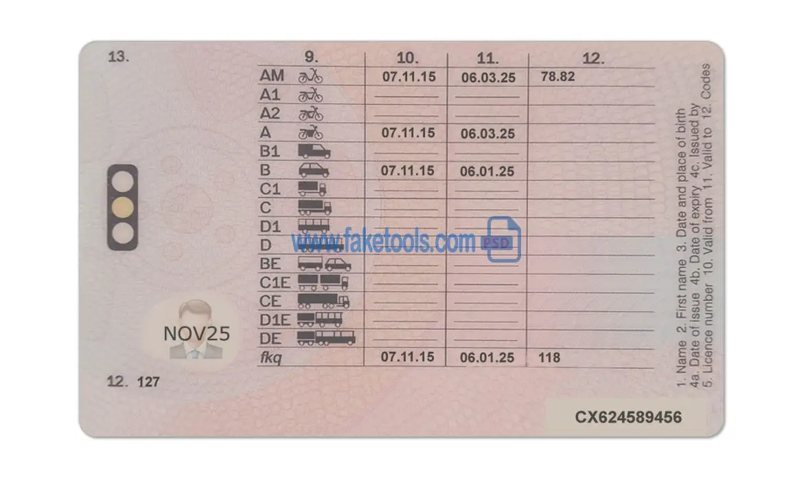 The UK Drivers License template PSD is a layer-based Photoshop file. Fully editable PSD template. Providing a high-quality PSD template for creating a realistic document. Each layer is individual and editable. This ensures the template allows for easy customization of personal information. You can click on each layer and change it, including the photo, name, DL number, issue date, expiration date, gender, birth date, background, and more. That’s what makes it useful.