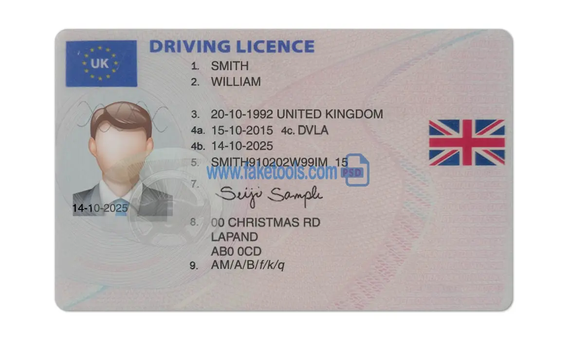 👉 UK Drivers License template PSD | High-Quality & Editable