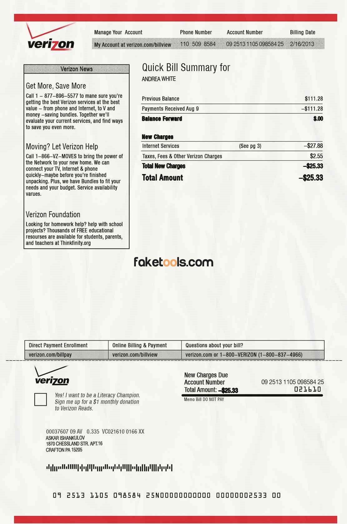 Verizon Utility Bill Template PSD Files Included: