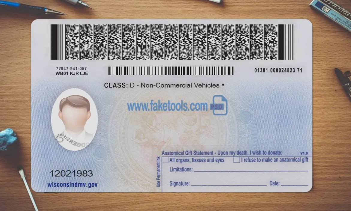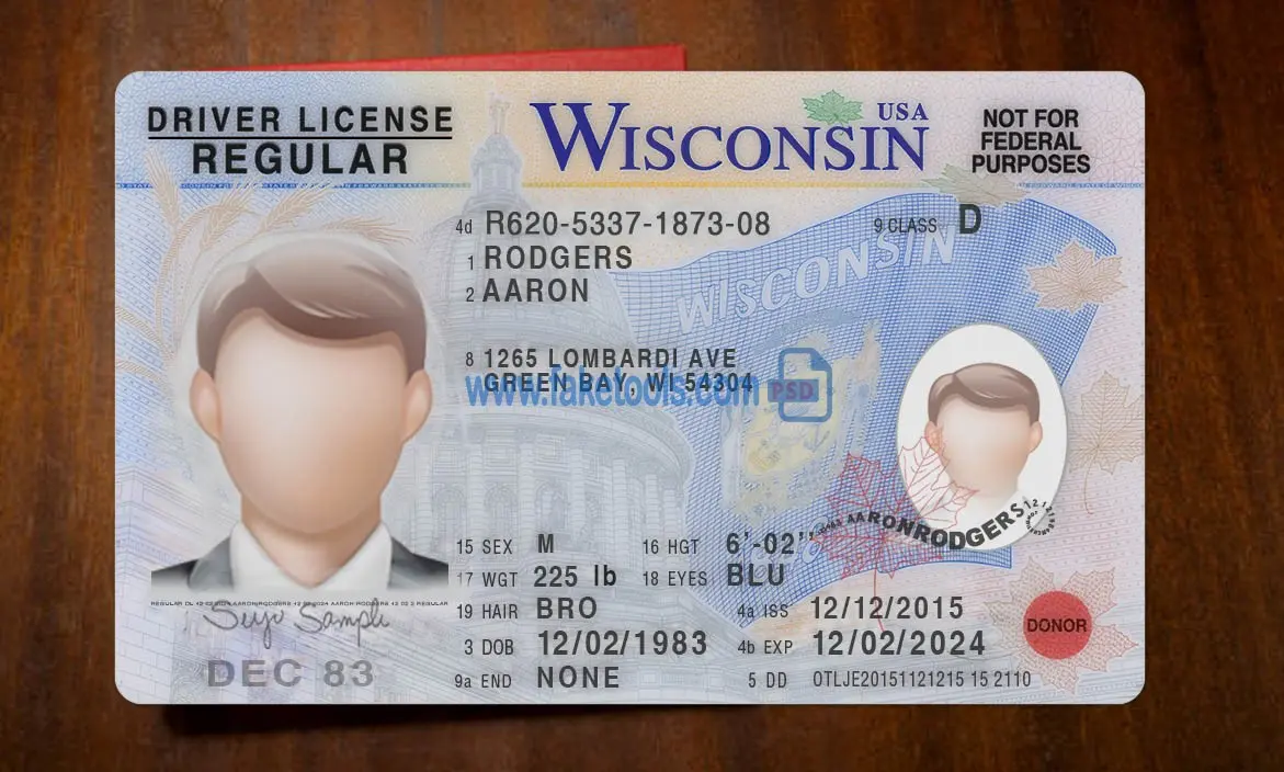 👉 Wisconsin Drivers License template PSD | High-Quality & Editable