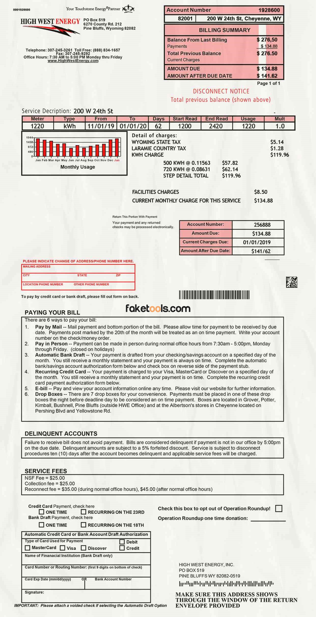 Wyoming utility bill template psd | Wyoming proof of address template psd